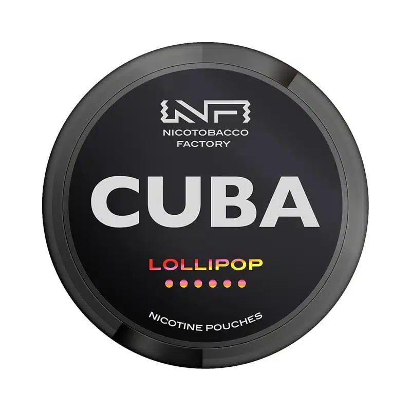 CUBA BLACK Lollipop Sachets de nicotine au goût sucré de sucette. Sans tabac, Slim Pouches, force moyenne et goût durable pour le quotidien.